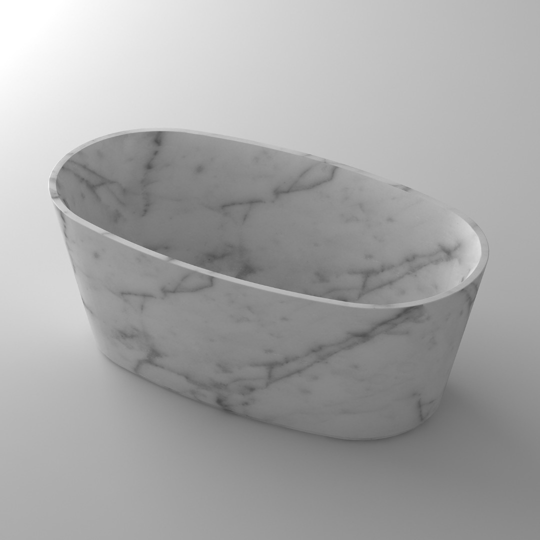 • Freestanding marble bathtub with overflow, seamless design