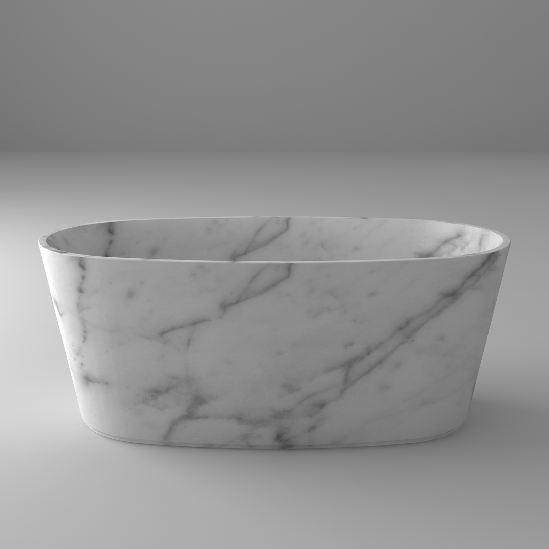 Carved from solid marble, this bathtub highlights the timeless beauty and individuality of natural stone, each piece unique, with subtle veining and tonal variations that make every bath one of a kind. Beyond its sculptural appeal, marble is a durable, long-lasting material prized for its strength and naturally cool, tactile surface.